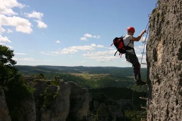 Parcours sportif : cette Via Ferrata unique descend d’abord dans un gouffre (jusqu’à 55 mètres sous terre) pour découvrir l’envers du décor des Grands Causses, avant de devenir aérienne par un parcours tout en crêtes, agrémenté de tyroliennes, au sommet de somptueux paysages. Agréé Education Nationale. Conseillée à partir de 12 ans.