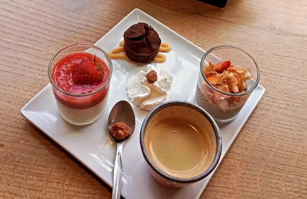 Une cuisine de saison, des plats faits maison, des jus de fruits frais à l’extracteur. Sur place ou à emporter à deux pas du Mandarous.